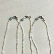 ※なるべく水に強い糸や金具を使用しておりますが、劣化の原因となりますので水場は避け、水や汗がついてしまった場合はこまめに拭きとって下さい。