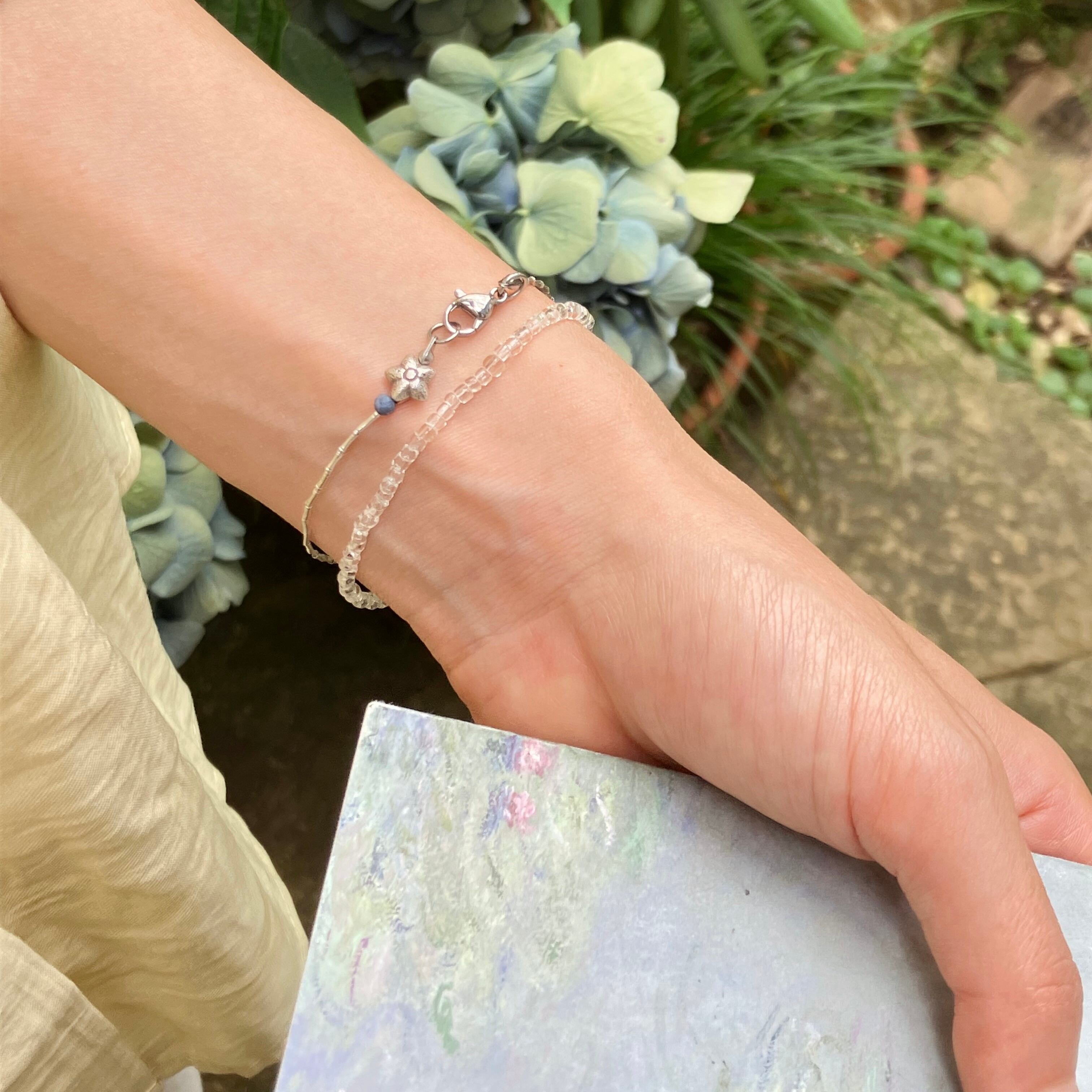 ※なるべく水に強い糸や金具を使用しておりますが、劣化の原因となりますので水場は避け、水や汗がついてしまった場合はこまめに拭きとって下さい。