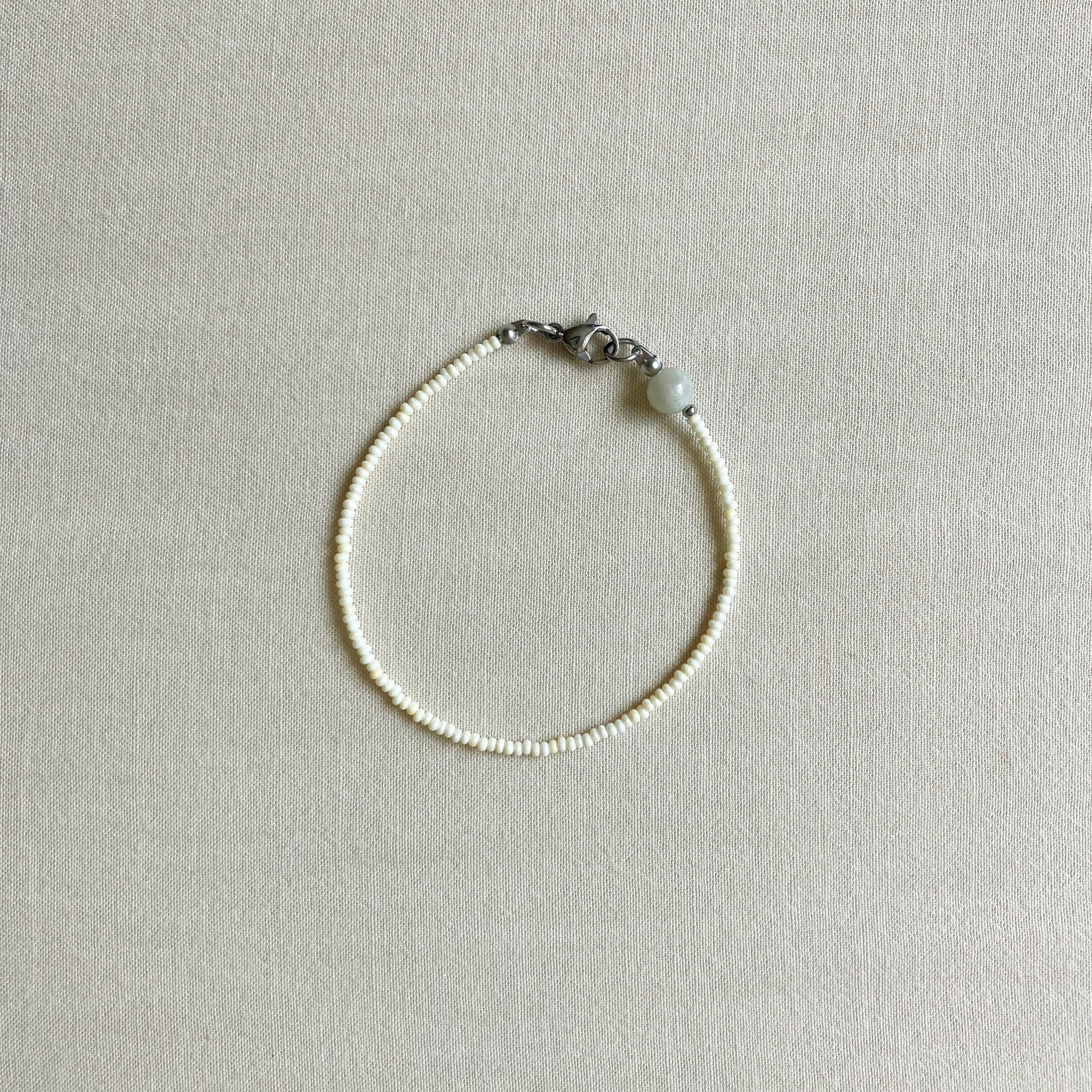 ※なるべく水に強い糸や金具を使用しておりますが、劣化の原因となりますので水場は避け、水や汗がついてしまった場合はこまめに拭きとって下さい。