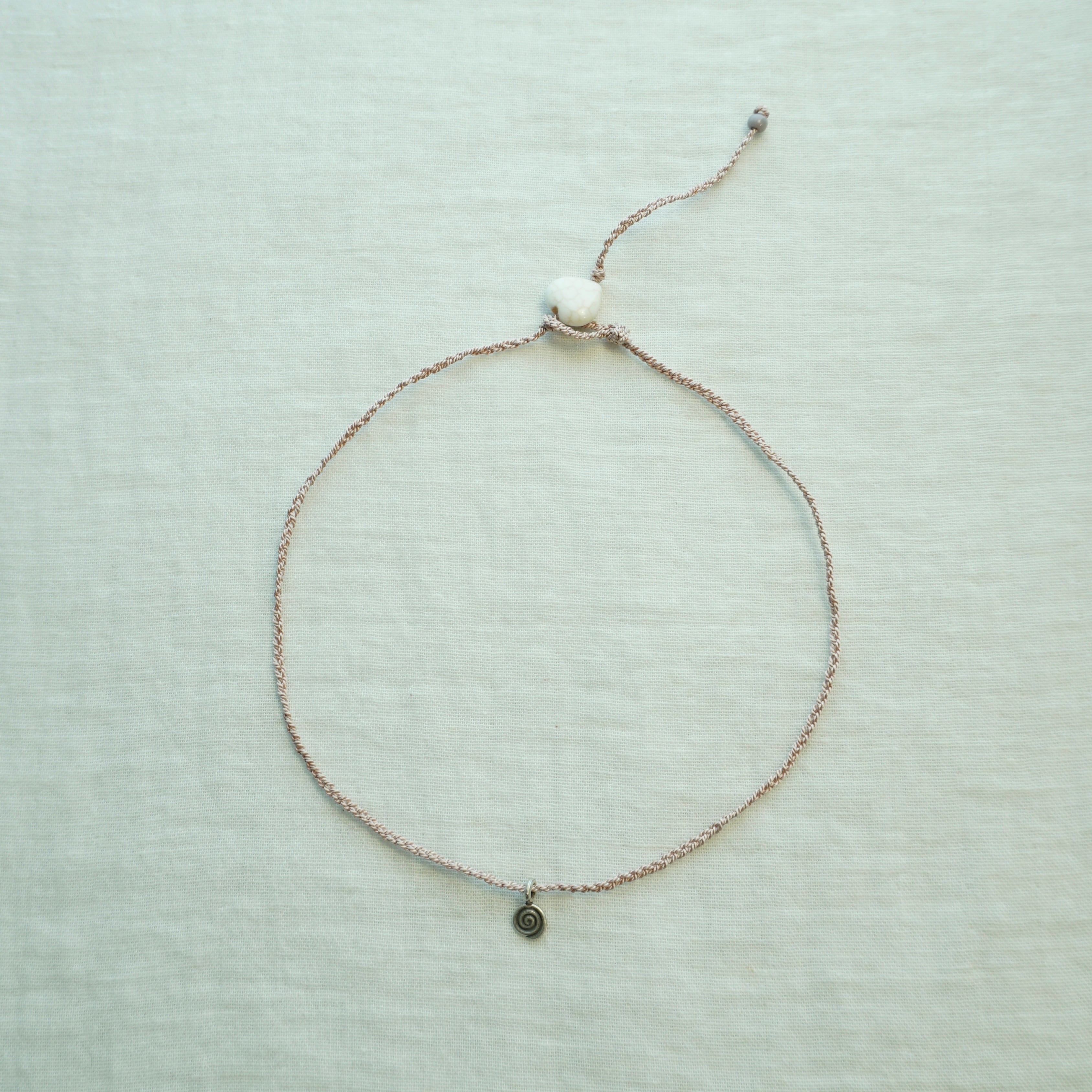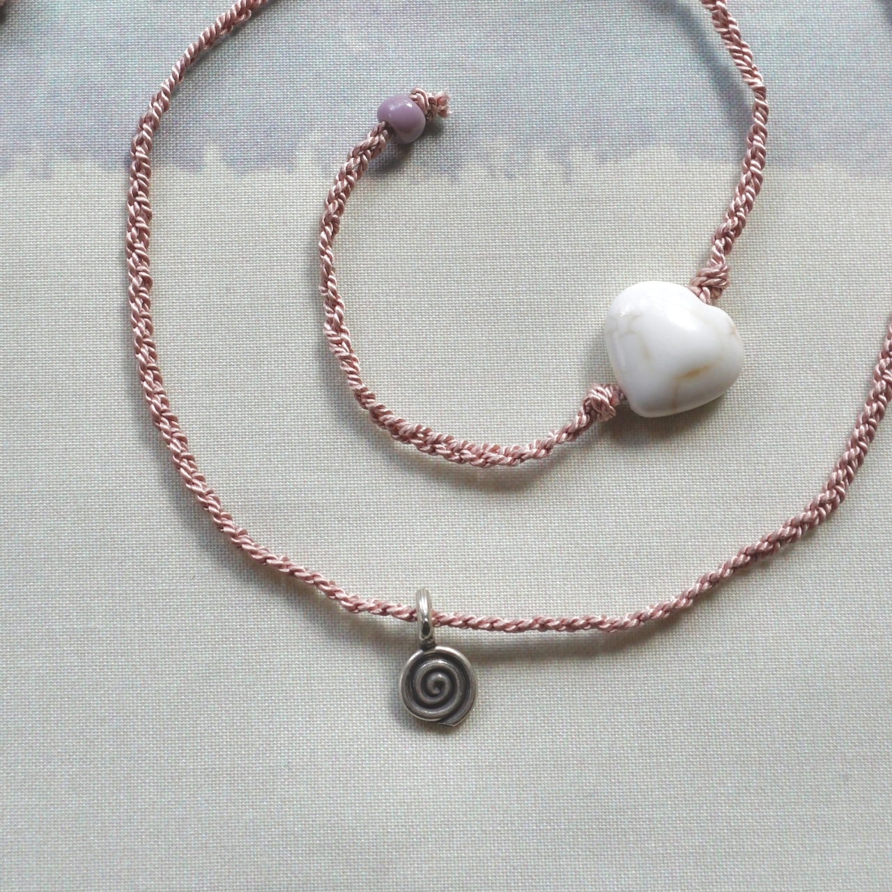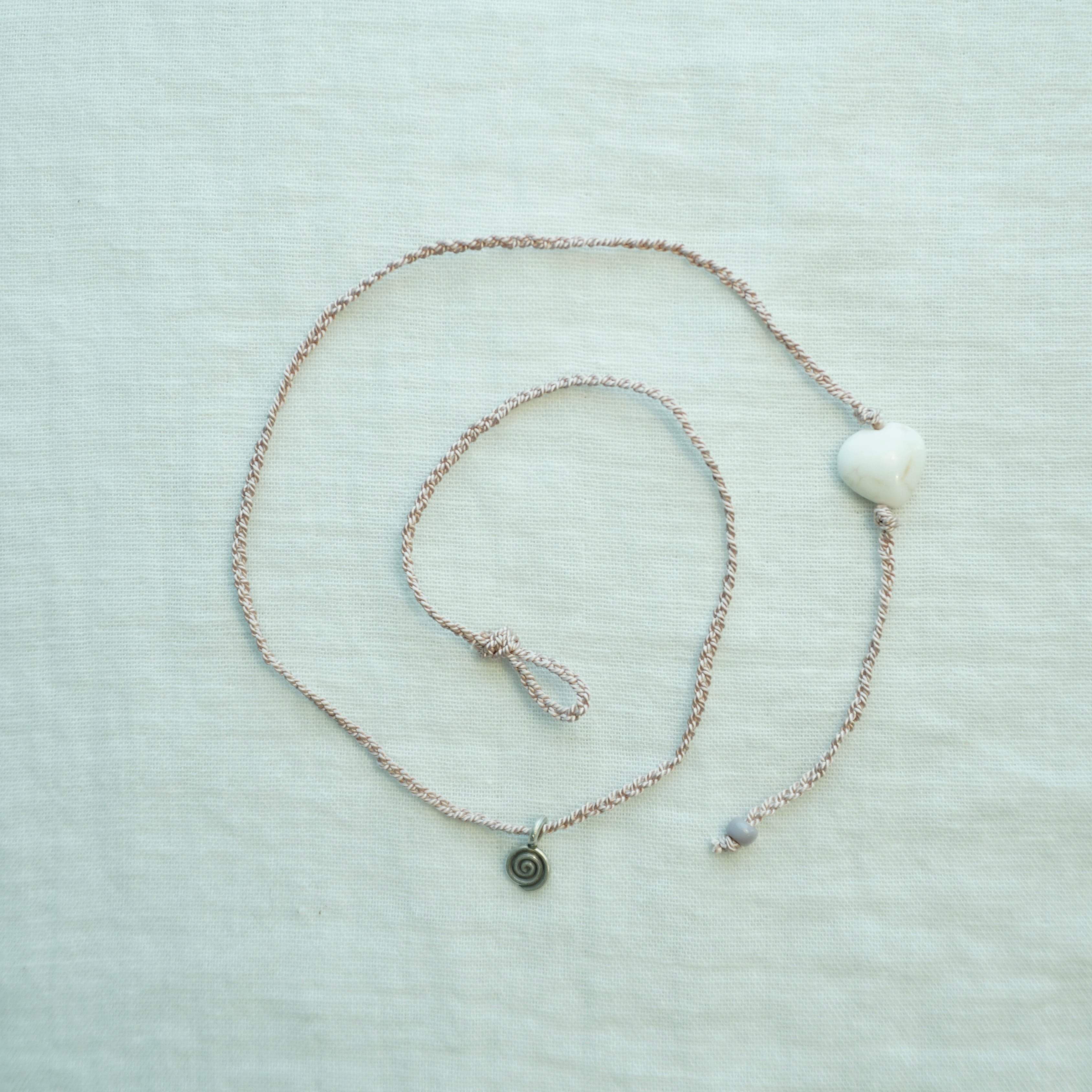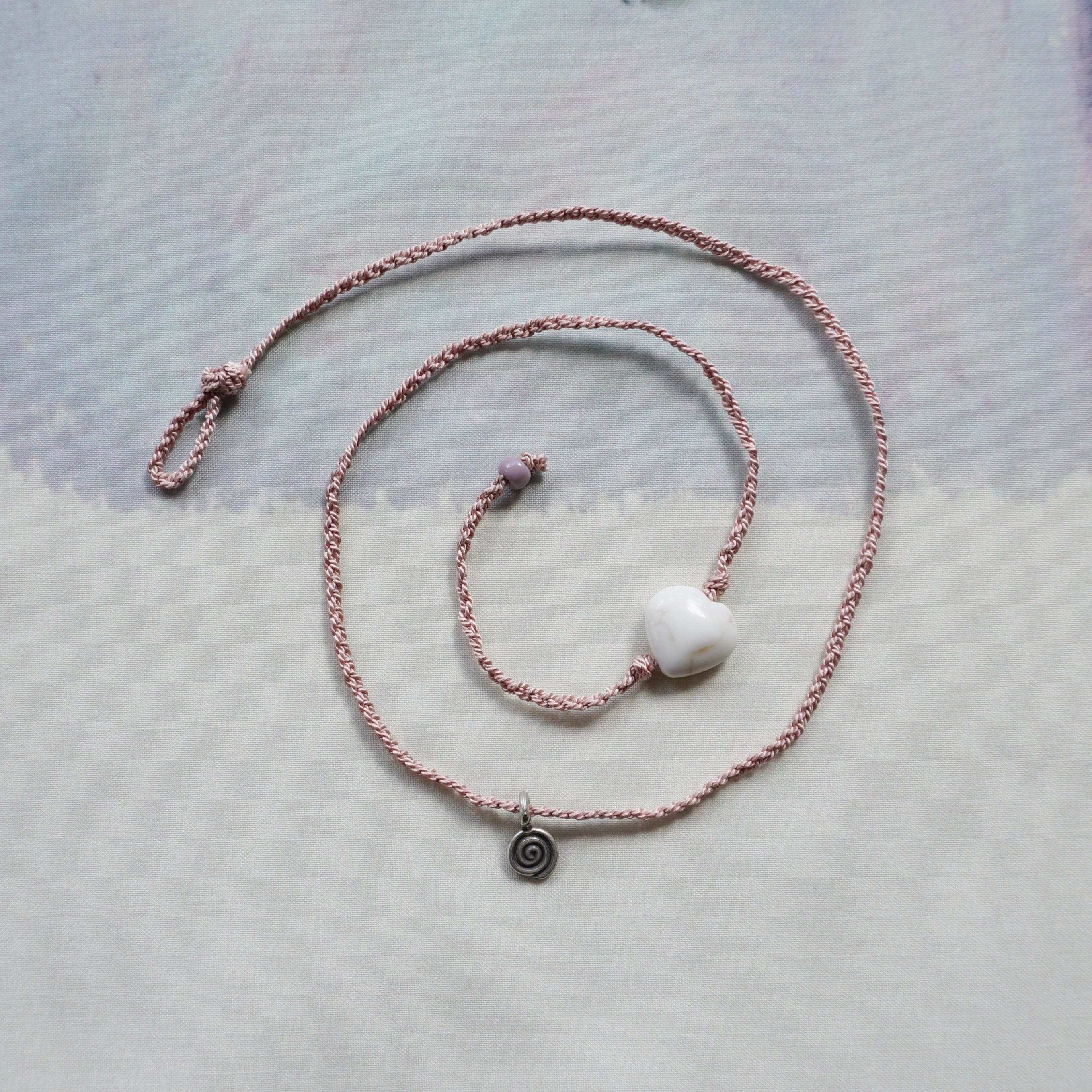 materials: natural silk, magnesite(heart), glass bead, karen silver