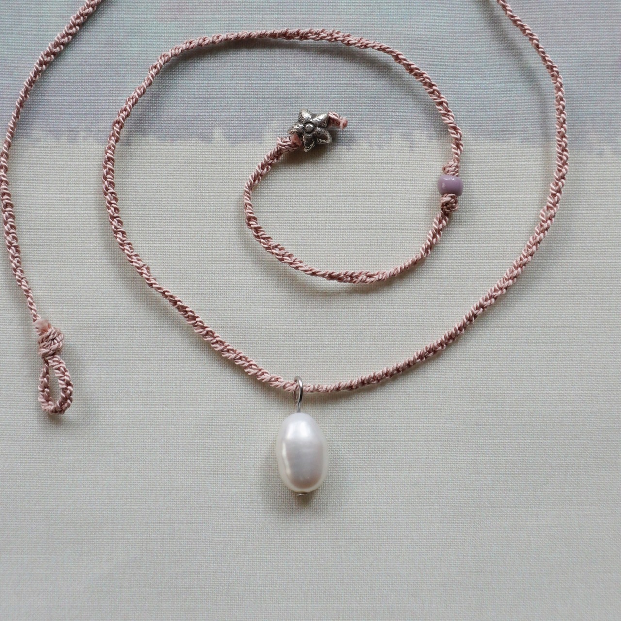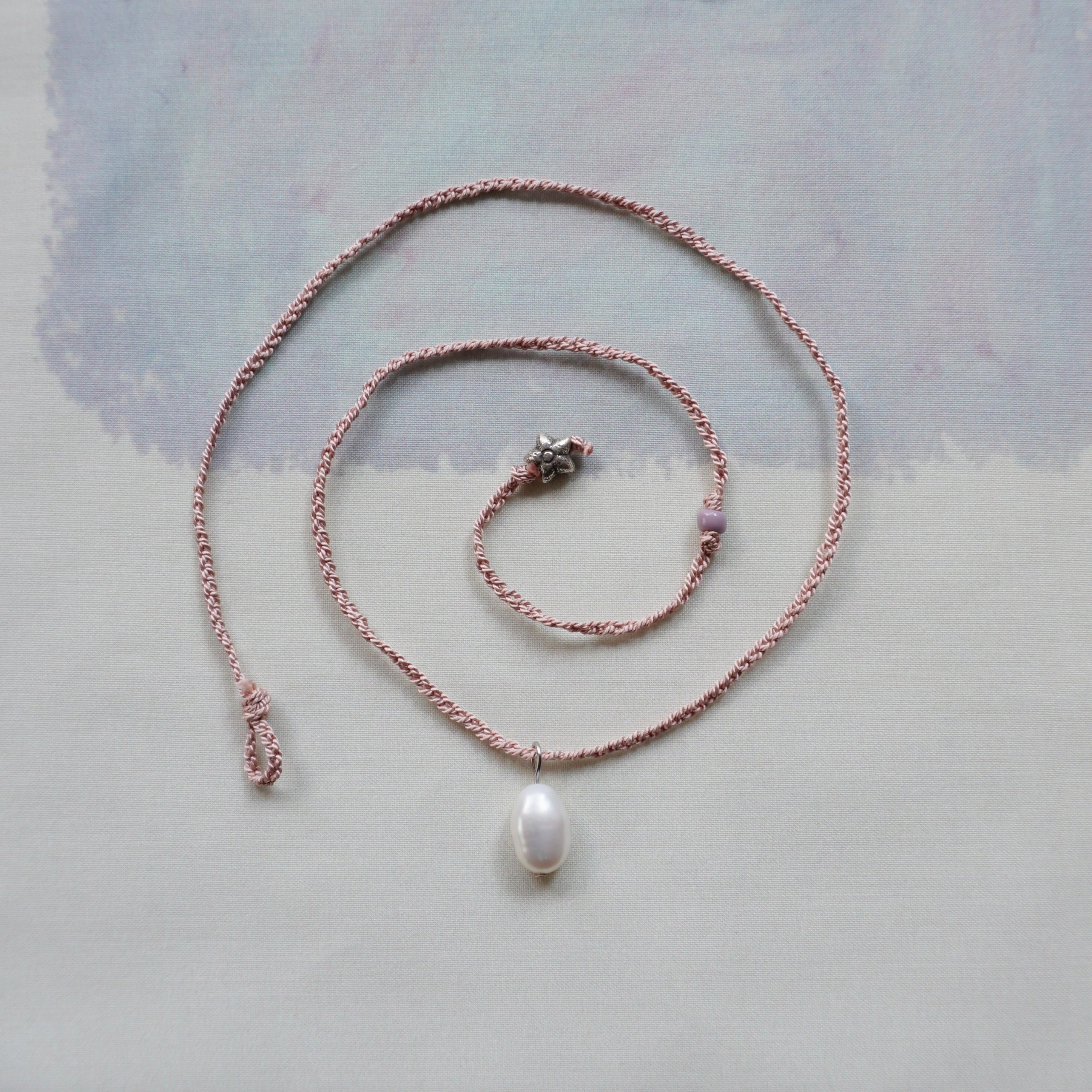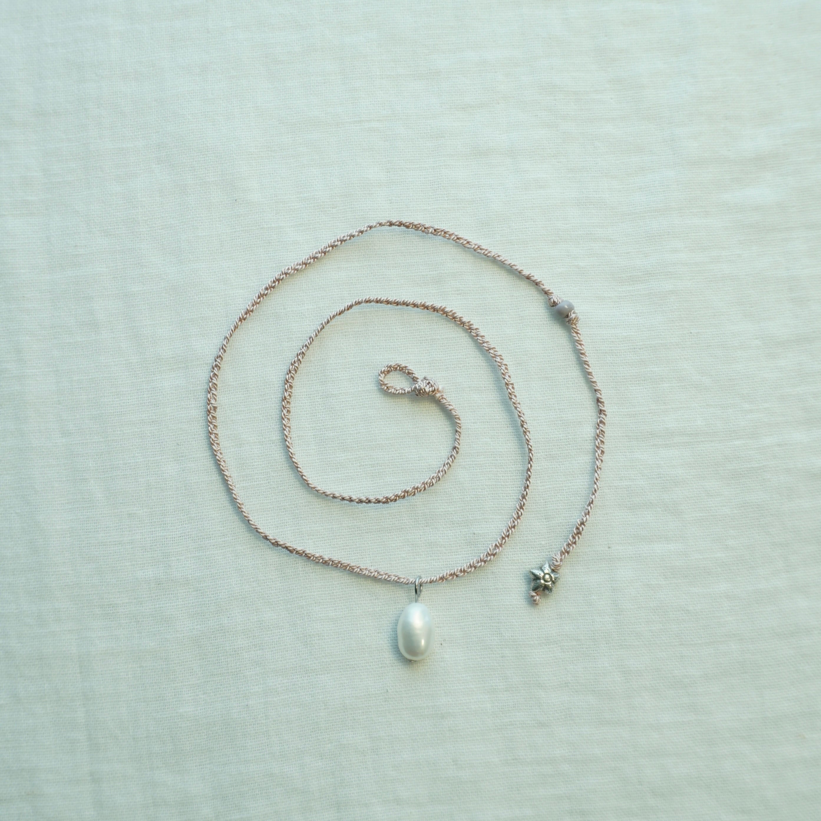 materials: natural silk, fresh water pearl, karen silver, glass bead.